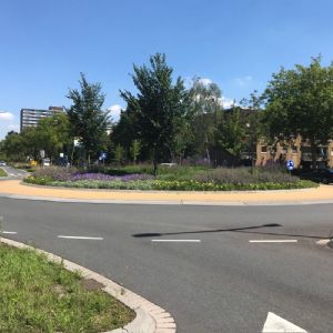 In de gemeente Haarlem is een rotonde toekomstbestendig ingericht. Biodiversiteit en verstandig omgaan met hemelwater stonden bij deze rotonde voorop. Het hemelwater wordt op een natuurlijke manier afgevoerd en de bermen zijn voorzien van een rijk bloemenmengsel, zodat ze de hele zomer een aantrekkelijk beeld bieden en voor iedereen iets om van te genieten. Het uitgebreide beplantingsplan is samengesteld door Griffioen, met meer dan 20 soorten vaste planten. Het is niet de enige rotonde in de gemeente die zo is ingericht; dat zijn er in totaal vier.