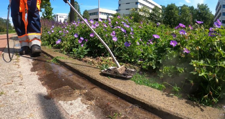 Griffioen: 'Ik ken de weerstand tegen heet water in de sector en dacht: als ik deze perkschoffel nu gewoon zo makkelijk en 'lui' mogelijk maak, verdwijnt die weerstand vanzelf. Het enige nadeel dat de machine heeft is als de werkzaamheden vlakbij een gazon zijn en de heetwaterslang op het gazon ligt. Een dun strookje gazon kan dan al in enkele dagen bruin kleuren. Daar moet je rekening mee houden, vooral als je werkt in private tuinen.'