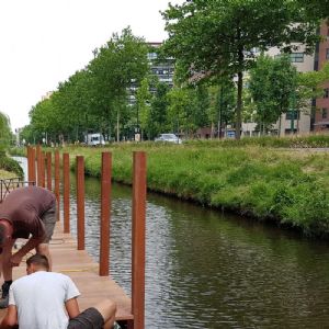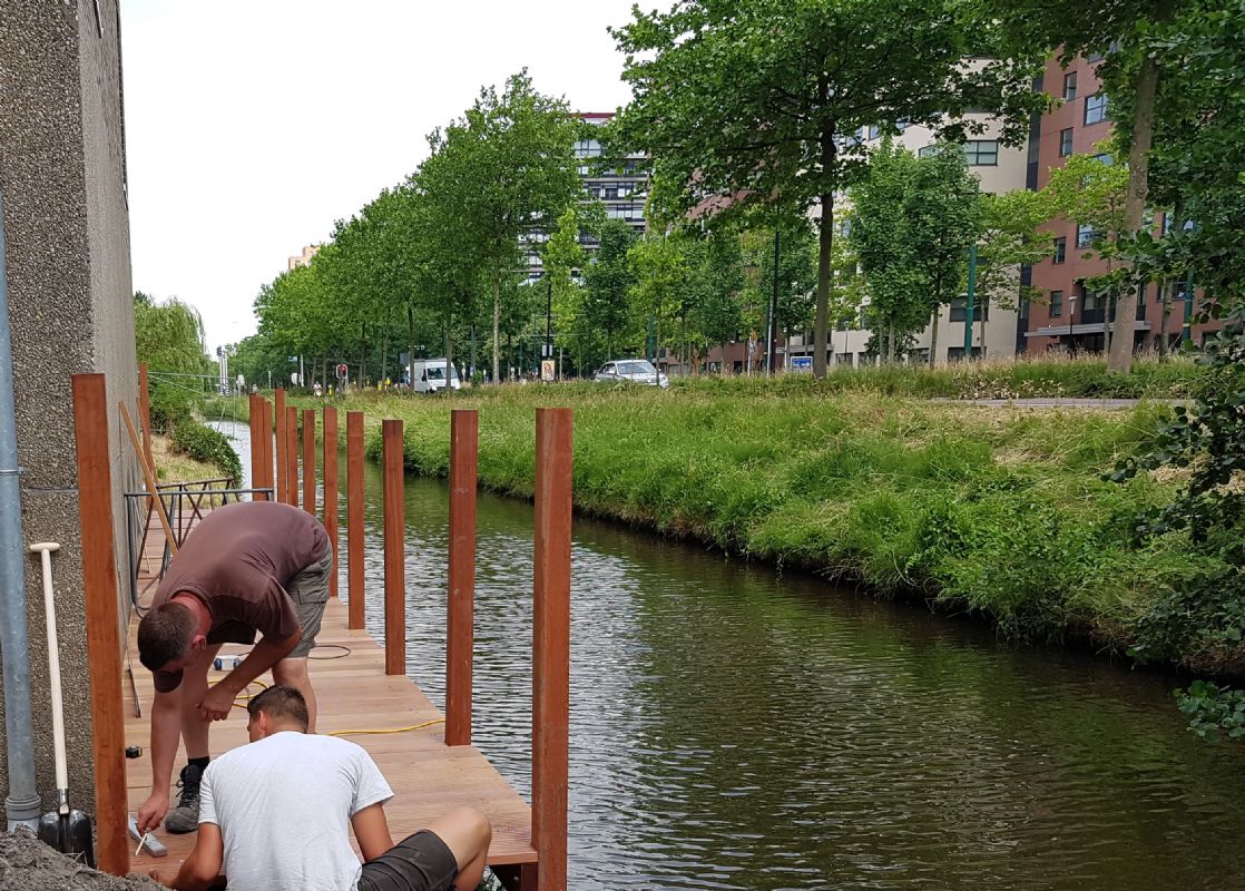Hovenier Van der Heijden uit Den Hoorn, een bedrijf dat met 35 medewerkers alle segmenten bedient, probeert op allerlei vlakken doordacht met milieu, klanten en medewerkers om te gaan. Gezonde groeiplaatsen en de juiste soort op de juiste plek staan centraal, er wordt chemievrij gewerkt en meegedacht over klimaatadaptieve oplossingen bij projecten. Het werken met FSC-gecertificeerde hardhoutsoorten valt binnen deze bedrijfsfilosofie.