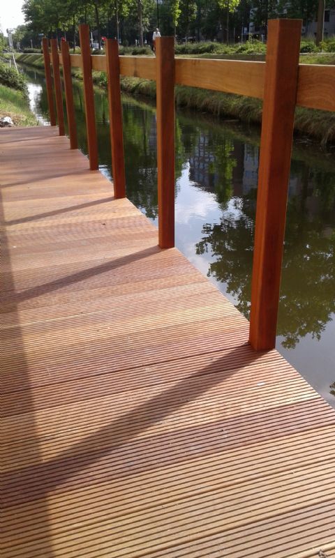 De Wit knikt. Ze vertelt dat houtzagerijen die onder FSC-keurmerk werken, regelmatig kampen met restpartijen hout die niet worden verkocht, want onbekend maakt onbemind. De Wit: 'Productonderzoek en goede voorlichting, daar ligt onze taak. Wij hebben kennis van alle houtsoorten en hun eigenschappen, zoals bovengronds gebruik, grondcontact, watercontact, draagkracht, structuur en kleur. We adviseren de juiste houtsoort voor de juiste toepassing, en daarbij leiden meerdere wegen naar Rome. Om de diversiteit in stand te houden, moet je soms bepaalde houtsoorten laten staan en voor minder bekende soorten kiezen. We blijven ons daarom inzetten voor een zo breed mogelijk keuzepalet. Nieuwe, gelijkwaardige houtsoorten moeten zich nog op grote schaal bewijzen voor de lange termijn. Sommige van deze minder bekende soorten worden toegepast in proeven. Zo is de houtsoort Acariquara uit Brazilië ingezet in een proef van Rijkswaterstaat in 2002, ter bescherming van de tweede Maasvlakte tegen het water.' Ze vat samen: 'Op het gebied van tropisch hardhout moet je niet alleen handelen vanuit de vraag, maar ook vanuit het aanbod van het bos. Er is een scala aan tropische hardhoutsoorten, maar we gebruiken maar een select aantal, waardoor we de bosbouw niet efficiënt zijn werk laten doen. Diversificeren en verantwoorde bosbouw zijn het antwoord op roofbouw en ontbossing. Dit geldt overigens voor hout in het algemeen: ook Europese bossen en aanplant zouden veel biodiverser kunnen zijn. Als we die kant op gaan, zijn we onderdeel van de oplossing om onze wereldwijde bossen en biodiversiteit te behouden.'