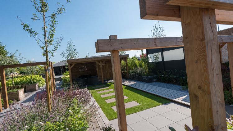 Gevelbekleding gemaakt van composiet is een opkomende trend in de hovenierswereld. Composiet is een gerecycled product dat voor 60 procent bestaat uit houtafval dat wordt gemengd met 40 procent kunststof. Vanuit ecologisch oogpunt is composiet dan ook een prima keuze. Het heeft de uitstraling van puur hout, maar is eenvoudiger te onderhouden. Sinds kort levert Buiter Beton ook gevelbekleding van composiet. De ruime keuzemogelijkheden in composiet, zoals gevelbekleding, zijn te bezichtigen in het 5000 m2 grote sierbestratingspark met diverse thematuinen in Balkbrug, maar ook bij de vestigingen in Hengelo (Overijssel) en Naarden. Je kunt het sierbestratingspark in Balkbrug eveneens thuis vanachter je laptop bezoeken, want er is ook een virtuele tour. Ga daarvoor naar: www.buiterbeton.nl/showtuinen/virtuele-tour/.