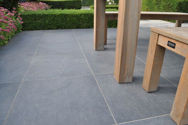 Ceramaxx is een nagenoeg waterdichte tegel. Hoe je omgaat met de afwatering van de constructie, is de keuze van de hovenier/installateur. Als je zorgt voor een goed opgebouwde fundering met de juiste korrelmaat (gebroken puinfundering of granulaatfundering), kun je probleemloos werken met een waterdoorlatende voeg. Verdickt geeft de voorkeur aan een waterafstotende voeg. 'Een waterdoorlatende voeg kan bij vorst problemen opleveren, omdat een bevroren ondergrond kan gaan bewegen; dat willen we zien te vermijden. Wij hebben - onder andere in verband met vorst - een lichte voorkeur voor een waterafstotende constructie, omdat wij ervan overtuigd zijn dat al te veel water in constructies buiten altijd een risico met zich meebrengt. Voorkomen is altijd beter dan genezen. In principe is zowel de waterafstotende als de waterdoorlatende methode prima, als de hovenier/installateur maar de regels van de kunst respecteert. In onze showtuin in Echt hebben we Ceramaxx zowel in drainagemortel als in gestabiliseerd zand gelegd, om te laten zien dat beide opties perfect en probleemloos toepasbaar zijn.'