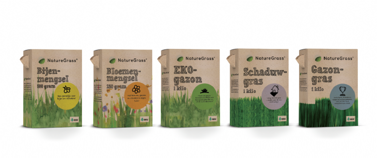 'De NatureGrass-producten zijn sterk op het gebied van duurzaamheid en biodiversiteit. Daarnaast zorgt een gazon op zich ook al voor meer duurzaamheid en biodiversiteit in een ecosysteem. Eko Gazon is het eerste 100 procent biologisch geteelde graszaad voor gazon: het is geteeld zonder chemie en kunstmest. Zowel met het bloemenmengsel als met het bijen-/vlindermengsel kunnen consumenten de biodiversiteit in hun tuin vergroten. Een grotere soortenrijkdom zorgt voor een krachtiger ecosysteem, dat beter met nieuwe en extreme omstandigheden kan dealen.' De verpakkingslijn is ook duurzaam. De doosjes zijn van gerecycled materiaal met 40 procent grasvezels. Het papier wordt geproduceerd in een energiebesparend proces. Er wordt minder dan 2 liter water per ton verbruikt, in vergelijking met meer dan 1000 liter water per ton bij gewone papierproductie. Verder is het hele proces volledig vrij van chemicaliën.'