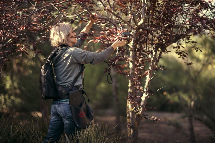 Een jaar of vier geleden nam Cramer accumachines in het assortiment op. Dankzij het hogere voltage wordt de batterij minder belast en is er minder warmteontwikkeling. Daarbij heeft het accu-apparaat ook nog eens meer power. 'Met één acculading kun je 15.000 tot 18.000 snoeibewegingen maken', vertelt Maissan. 'De schaar is geschikt voor takken tot 40 mm.' De accusnoeischaar van Cramer wordt geleverd met een draaggarnituur. Daarbij draagt de gebruiker de batterij in de rugzak en de schaar in een foedraal aan de riem, op heuphoogte.