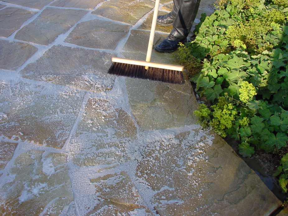 Niet alle waterdoorlatende voegmortels zijn geschikt voor elke tegel of klinker. Wezendonk haalt het voorbeeld aan van flagstones. Deze natuurlijk gekloofde platen of tegels zijn in opkomst voor de populaire mediterrane look van particuliere tuinen. Bij de aanleg van een terras of pad worden ze aangebracht op een stabiele ondergrond met drainagemortel of op een gestabiliseerd zandbed. 'Bij flagstones zijn de voegen zo breed dat ze last krijgen van de uv-straling. Ze verzanden dan langzaam van bovenaf doordat de uv-straling het bindmiddel afbreekt. Dat geldt voor onze waterdoorlatende kant- en-klare eencomponent-Varistone LM Aqua, maar ook voor elk ander eencomponent-voegmiddel. Bij het onderhoud ontstaat daardoor het risico dat je tijdens het vegen de bovenste, korrelig geworden voeglaag wegveegt. Bij de aanleg van flagstones adviseren wij het gebruik van Varistone Z. Deze tweecomponenten-voegmortel op basis van epoxyhars is drainerend en uv-straling heeft er geen invloed op. De voegmortel is ook bestand tegen onderhoud met de hogedrukreiniger.'