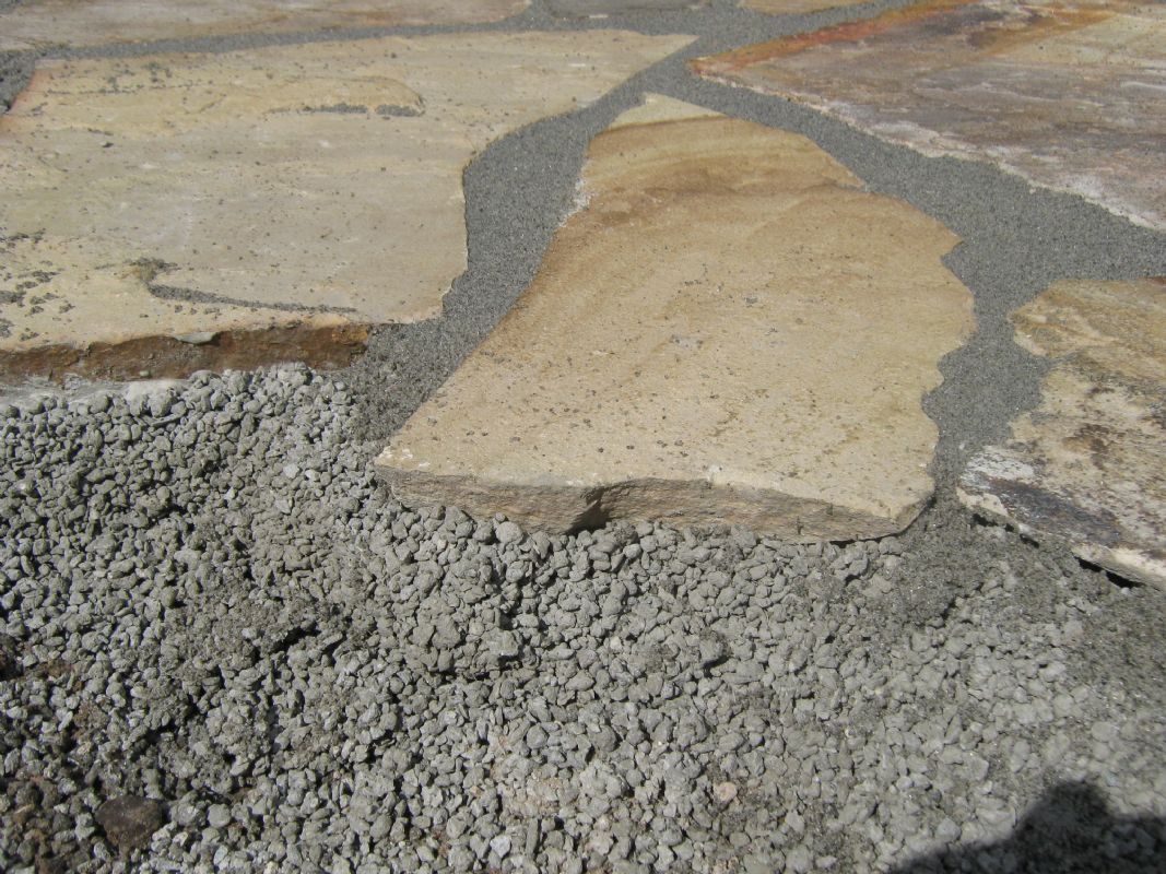 Links: flagstones met drainagemortel Varistone Z, naturel. Rechts: flagstones-opbouw met drainagemortel Varistone Z, steengrijs