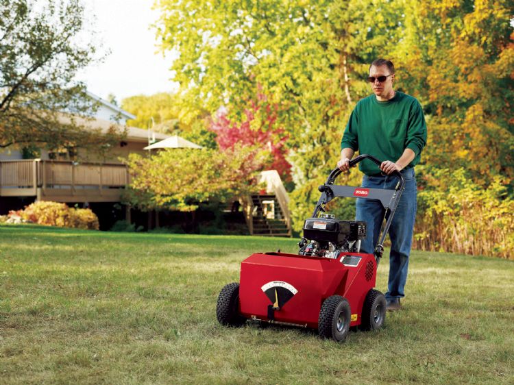 En dat werkt uitstekend, zegt Peter Vijverberg. 'Ik gebruik de machine dagelijks, dus ik weet waar ik het over heb. Wat de juiste verzorging is van een gazon, hangt van verschillende factoren af. Zo leg ik ook beregeningssystemen aan. In veel gevallen zijn dat ondergrondse systemen die door waterdruk omhoogkomen en na gebruik weer terugzakken tot onder het maaiveld. Want een mooi gazon aanleggen is één, maar je moet het ook mooi houden.' Alles begin bij het zaadje en dat deel van het werk neemt de Toro-doorzaaimachine voor zijn rekening. 'Het zaad wordt mooi gelijkmatig aangebracht en door de messen komt het net onder het oppervlak terecht. Dat zorgt voor een hoge ontkiemingsgraad. Handmatig doorzaaien is vaak een kwestie van strooien op goed geluk en dan maar kijken wat er opkomt, maar deze machine lost dat op. Ik ben er erg tevreden over.'