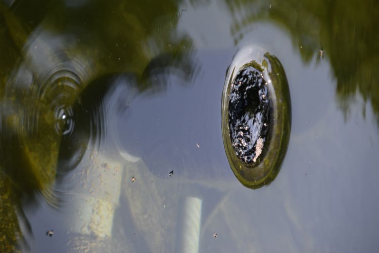 | | Voorbeeld van een skimmer. Hiermee onttrek je water aan het oppervlak en zuig je tegelijkertijd oppervlaktevuil af. |