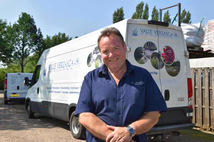 Valle Verzasca in Keijenborg (Gld.) richt zich sinds dertig jaar op de bouw van vijvers, de laatste twintig jaar ook op zwemvijvers. Eigenaar René Mullink noemde zijn bedrijf naar een Zwitserse bergvallei. Jaarlijks legt hij 150 tot 200 vijvers aan in binnen- en buitenland; daarmee mag je dit gerust een gespecialiseerd bedrijf noemen. In zijn kantoor hangt een foto van de grootste uitdaging die het jaar 2019 opleverde in Duitsland: een zwemvijver met een wateroppervlak van ruim 3.000 vierkante meter. Wat betreft grote zwemvijvers zit zijn orderboek tot begin volgend jaar vol. Vanwege de grote belangstelling levert het bedrijf ook bijna complete (zwem)vijverpakketten aan collega-hoveniers. 'We ondersteunen verschillende hoveniers bij het ontwerp en de situering van zwemvijvers. Soms zijn we ook fysiek aanwezig in verband met de aanleg van folie, filters, leidingen en dergelijke', vertelt Mullink. 'Verder heb ik in mijn magazijn alle technische materialen op voorraad in verschillende types en uitvoeringen, zoals filterbakken, pompputten, skimmers, waterpompen, uv-lampen en substraten. Daarnaast liggen er ook nutriënten, bacteriemengsels en verschillende biologische producten om aan het vijverwater toe te voegen.'