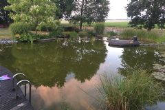 Overal in de zwemvijver is EPDM folie op maat gebruikt vanwege het sterk schommelende grondwaterpeil