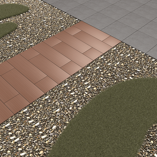 De ontwerper van het terras kan dankzij de flexibiliteit die dit nieuwe terrasvloersysteem biedt veel creatiever te werk gaan, verklaart Rob Addink, oprichter en directeur van BERA. 'Een aantal jaren geleden zag je vrijwel uitsluitend vierkante tegels in vaste vierkante maten, bijvoorbeeld 30X30 of 40X40 centimeter. Maar de technische mogelijkheden van de fabrikanten om verschillende modellen te leveren, zijn vrijwel ongelimiteerd. De trend is dat de variatie in maten en vormen enorm toeneemt. Het materiaal waaruit de tegels worden gesneden, komt in metersbrede plakken de machine uit. Hieruit kan elke mogelijke vorm of maat gesneden worden. Vierkant, rechthoekig, keurig recht naast elkaar gelegd of in visgraatpatroon, dat is allemaal mogelijk, mits de ondervloer het toelaat.'