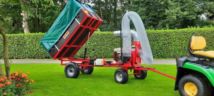 NIEUW! JOSTA Tuinmachines heeft een nieuwe bladzuiger aan het assortiment toegevoegd. De bladzuiger van het merk SCH supplies is op een smalle 4 wielige kiepkar geplaatst. Door het lage eigen gewicht en een breedte van 1.05m is het makkelijk maneuvreren in smalle doorgangen. De bladzuiger is voorzien van een sterke Honda motor die elektrisch start, en een eigen hydrauliek systeem voor het kiepen van de bak. Door de demontabele zijwanden is de kar ook prima voor andere doeleinden te gebruiken. De zuiger verkleint het blad sterk waardoor de capaciteit toeneemt en ook zeer geschikt is om bijv. na het snoeien van heggen het snoeisel op te zuigen. De machine kan met de hand of met een zitmaaier worden voortgetrokken. Kijk voor meer info op jostatuinmachines.nl