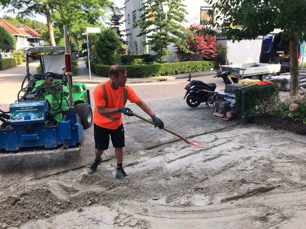 Bij aanvang van de werkzaamheden in onze tuin begin juni, werd begonnen met het afgraven. "De dikke kleilaag was de eerste uitdaging. Een relatief slechte ondergrond voor beplanting én het wegstromen van regen. De tweede uitdaging waren de tuinen eromheen. Voor het ideale effect graaf je het liefst zo'n 20 centimeter van die kleilaag uit. Als de tuinen van buren minder diep zijn afgegraven, dan brengt dat het risico met zich mee een verzamelbak voor het water van aangrenzende tuinen te worden", aldus Sidney.