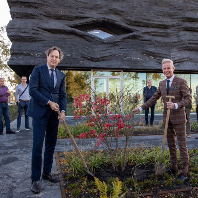 De tuin van het Flevolandse paviljoen Food Forum is klaar. De bezoekers worden volgend jaar tijdens Floriade Expo 2022 in Almere verwelkomd door een zee van onder andere wuivende grassen en luchtige gipsbloemen: beplanting die verwijst naar het zeeschuim en het wonen onder de zeespiegel. De tuin en de beplanting op en in het pand zijn aangelegd door leden van Koninklijke Vereniging van Hoveniers en Groenvoorzieners (VHG) en is hun inzending voor Floriade. VHG-voorzitter Egbert Roozen en gedeputeerde Jan-Nico Appelman onderstreepten de samenwerking door samen de laatste plant te plaatsen.