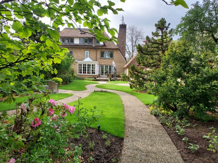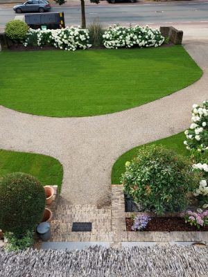 In Arnhem staat een riante woning met een dito oprit en een diepe achtertuin. Vorig jaar is de achtertuin opnieuw aangelegd met onder meer slingerpaden van Achterhoeks Padvast. Voor de oprit, gedeeld met de buren, is eveneens gekozen voor Achterhoeks Padvast. Verwerker Jurrien van Aggelen: 'Deze halfverharding is gemakkelijk in natuurlijke vormen te verwerken en dat was precies wat de architect adviseerde.'