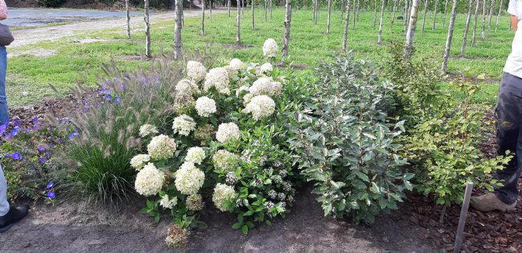 In maart 2021 heeft DCM bij VeluwePlant drie proefvakken aangeplant, met daarin Fagus sylvatica 'Atropurpurea', Ilex crenata 'Dark Green', Anemone 'Honorine Jobert', Rudbeckia fulgida var. speciosa, Liriopemuscari en Hibiscus syr. 'Oiseau Bleu'. Engelsman laat in het eerste demovak met de DCM-methode zien dat allereerst de bodemstructuur op orde is gebracht. 'Bij aanleg adviseren we standaard de meststof DCM Vivimus. Hiermee verbeter je de lucht-waterhuishouding in de grond door het organischestofgehalte op het ideale percentage te krijgen en de voeding aan te vullen waar nodig. Bij plantvakken raden we aan om dit middel 1-3 cm vanaf de toplaag door te mengen; bij de aanplant van bomen kun je het plantgat met DCM Vivimus aanvullen.'