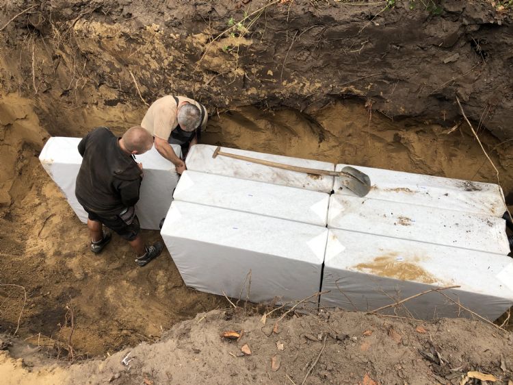 | | Aanleg infiltratievoorziening uitbouw. Aangelegde capaciteit: 4700 liter. Inhoud infiltratievoorziening: slechts 3060 liter! |