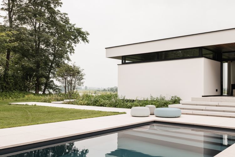 Accountmanager Gijs Gooren van Ebema is net zoals ons enthousiast over het project: 'Hier zie je wat een goed ontwerp en perfectionistische uitvoering kunnen doen. Met Michiel hebben we de details afgestemd van onze op maat geproduceerde Megasmooth-betontegels. Het resultaat is gaaf om te zien.' Bosch: 'Ik moest de opdrachtgevers er in eerste instantie wel even van overtuigen om te kiezen voor beton. Het klinkt toch een stuk minder chic dan natuursteen of keramiek. Maar toen ik ze de uitstraling van de Smooth-collectie liet zien, waren ze om. Inmiddels zijn ze heel blij met hun keuze.'
