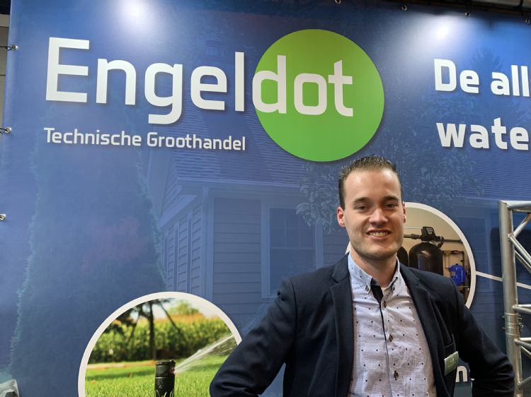 Martijn Wellink verkoopleider en adviseur bij Engeldot stond op de beurs voor wat extra naamsbekend voor het bedrijf wat gespecialiseerd is in beregeningsinstallaties. Het bedrijf bracht onder meer onder de aandacht dat zij gratis een vrijblijvend tuinberegeningsplan op maat maken voor hoveniersbedrijven. Een plan wat eenvoudig is te presenteren aan je klanten.