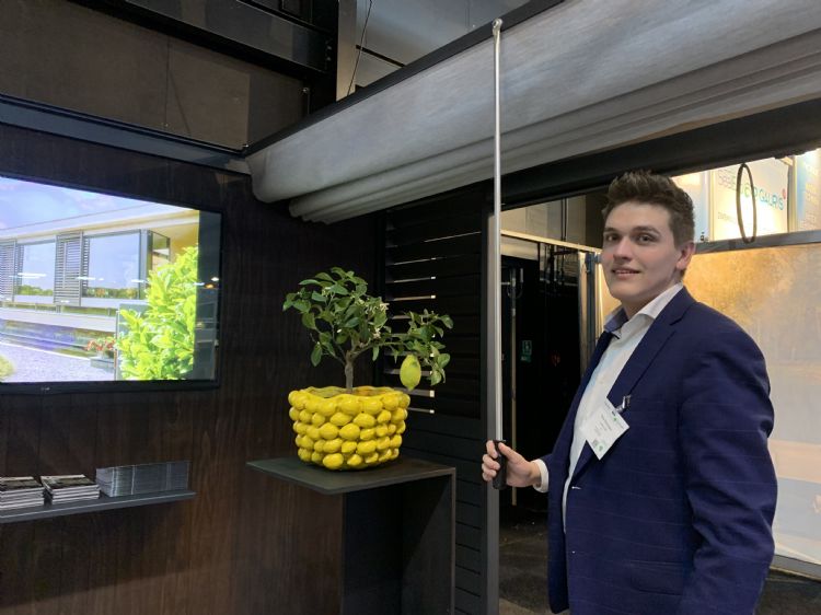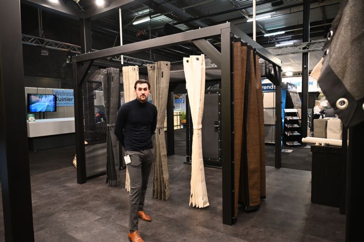Peter Doornhein van Luxxout stond op de beurs met hun buitensystemen. Luxxout biedt onder andere op maat zonwering, terras- en windschermen, aluminium pergola’s en lamellen panelen.