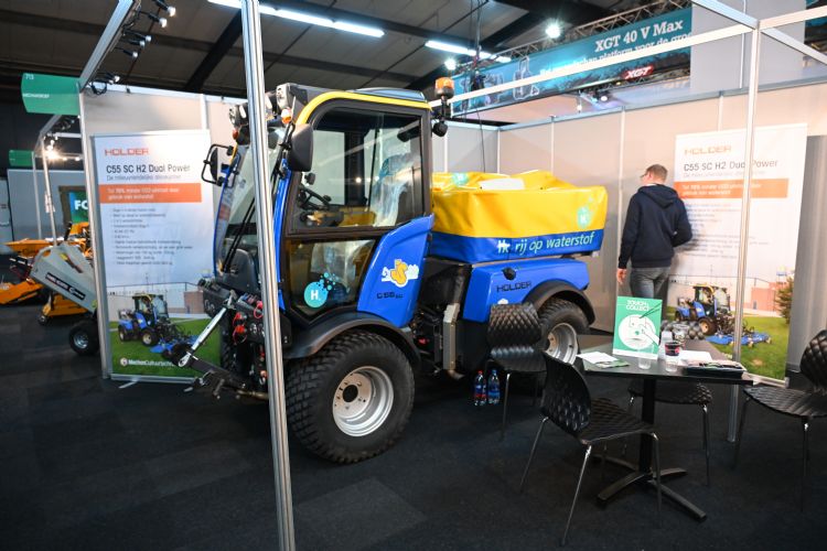 Accumachines zijn in, maar volgens sommigen zit de toekomst ook in machines die op waterstof lopen. Holder toonde deze machine -verkocht aan Jos Scholman- die loopt op waterstof.