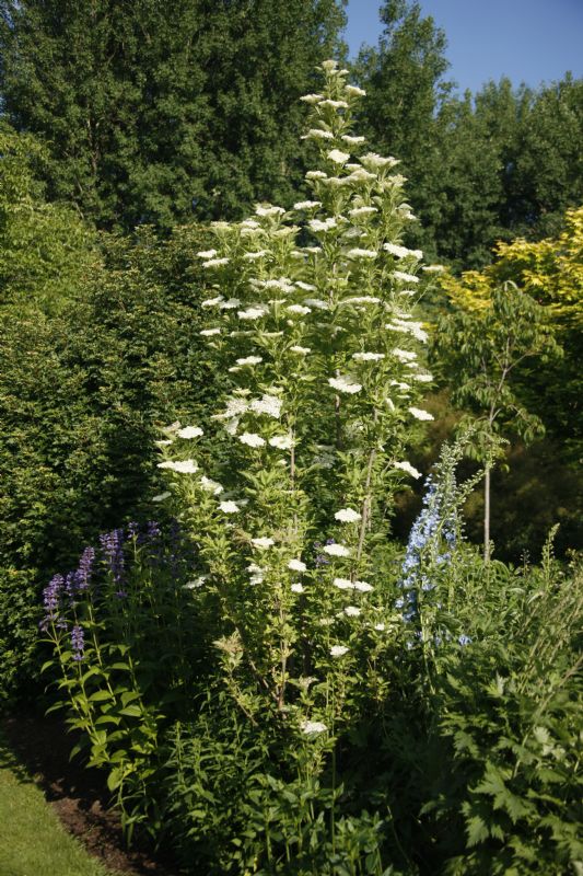 Sambucus nigra 'Obelisk' PBR: rijk bloeiende strak opgaande vlierbes