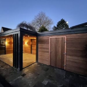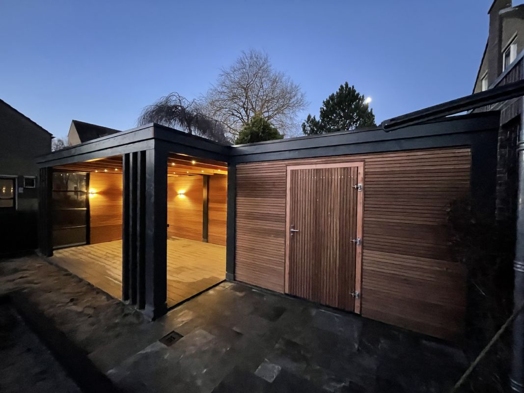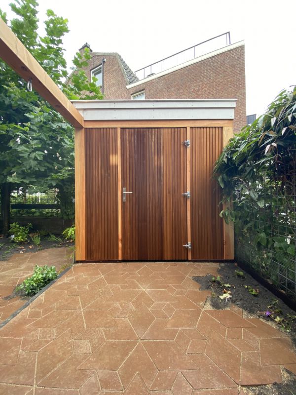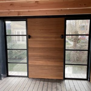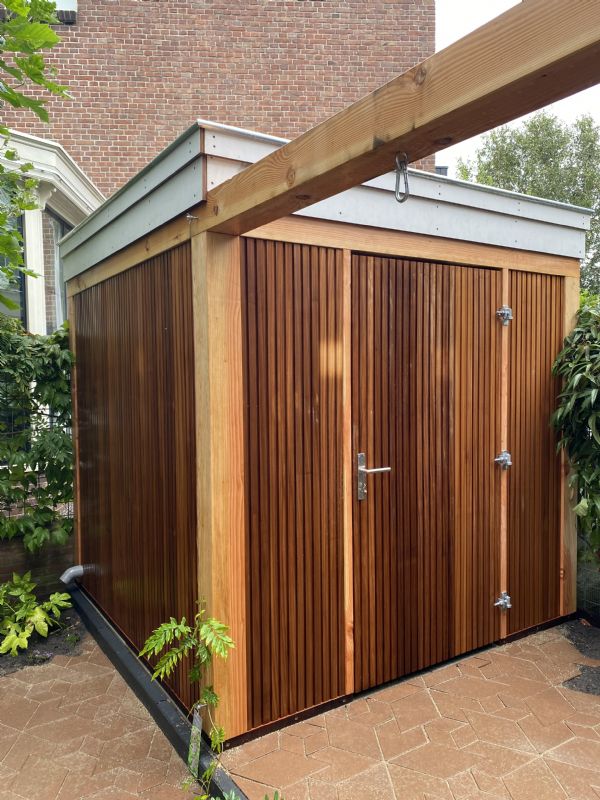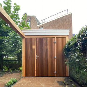 De laatste jaren is er een groeiende vraag naar mooi beklede gevels van opslagruimtes, garages en andere elementen met een zichtgevel in de tuin. Van Dorp Hout richt zich met zijn houtproducten op deze buitengevels. Directeur Henk-Arie Schra: 'Er komt steeds meer belangstelling voor verticale gevelbekleding. Alles kan, maar let wel goed op de ventilatie.'