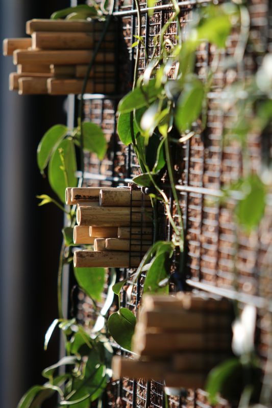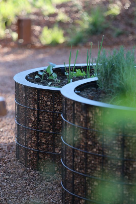 De twee huisjes waaraan Nocciolo zijn steentje heeft bijgedragen, zijn op meerdere plaatsen voorzien van perziksteen, een van de producten van het bedrijf. Zo heeft Nocciolo een schutting geleverd, is er een bijenhotel en staan er ronde plantenbakken. De ronde bakken die te zien zijn bij het bijenhotel zijn stevige plantenbakken op maat, die gevuld zullen worden met kruiden en groenten. De bakken zijn volledig gepoedercoat voor een chique uitstraling en afgewerkt met een deksel.