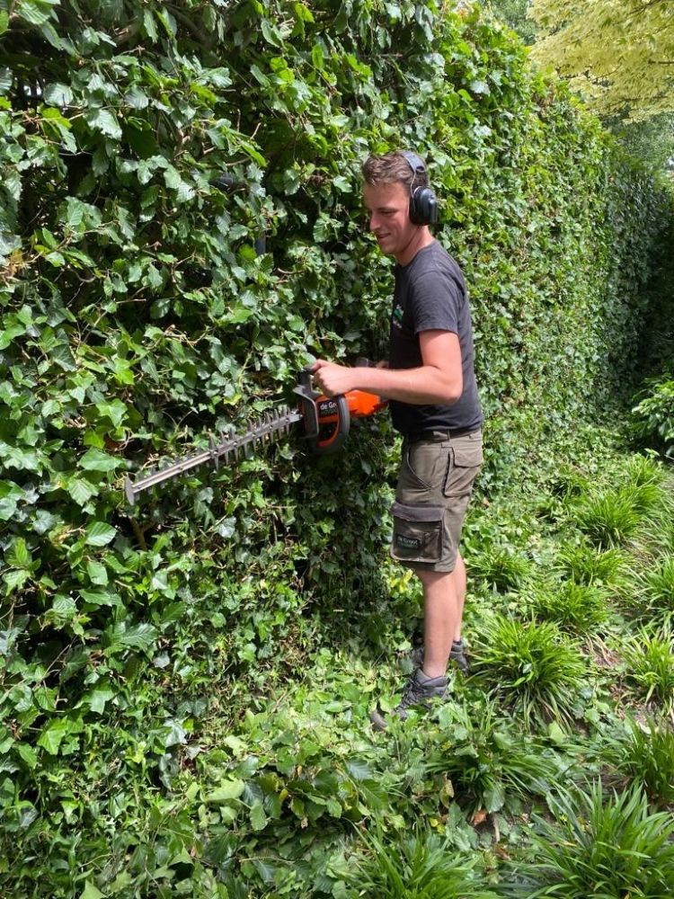 Manders voegt aan zijn laatste opmerking toe: 'Eerder kregen we nogal eens de vraag of we het gebruik van deze goedkope energie in plaats van benzine wel doorberekenen in onze offertes. Wij hebben van meet af aan in offertes geen onderscheid gemaakt tussen benzine en elektrisch. Het onderhoud en vervangen van slijtdelen zal niet zoveel verschillen; de hogere afschrijving op een machine met accu weegt misschien op tegen de hoge brandstofkosten van Aspen. De feedback die opdrachtgevers geven over accuhandgereedschap is zeer positief. Tijdens de coronaperiode werd er veel meer vanuit huis gewerkt en na de pandemie gebeurt dat nog steeds. Particulieren zijn blij dat ze in alle rust kunnen telefoneren en doorwerken als we in hun tuin bezig zijn.' In de zes jaar dat Manders nu in het vak zit, zag hij een belangrijke verandering in het hovenierswerk: 'Opdrachtgevers willen vooral ontzorgd worden bij het tuinonderhoud. Dat spitst zich nu vooral toe op automatische beregening en gazonmaaien met een robot. In dat opzicht wordt het groenonderhoud bij particulieren steeds digitaler', glimlacht Manders.