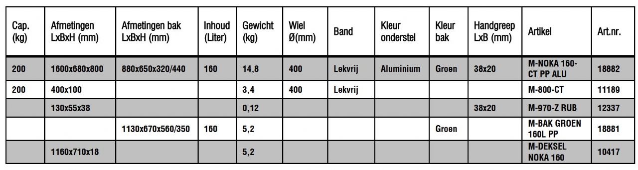 Technische gegevens Noka 160-CT WB