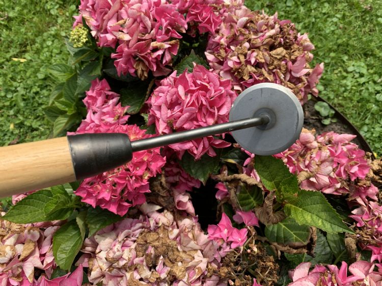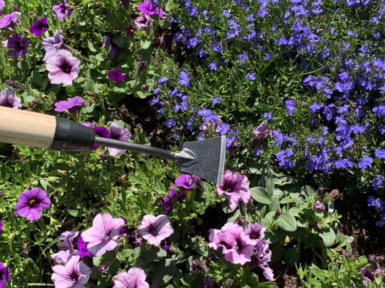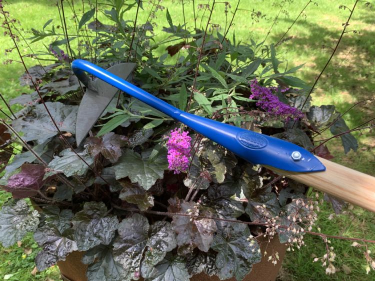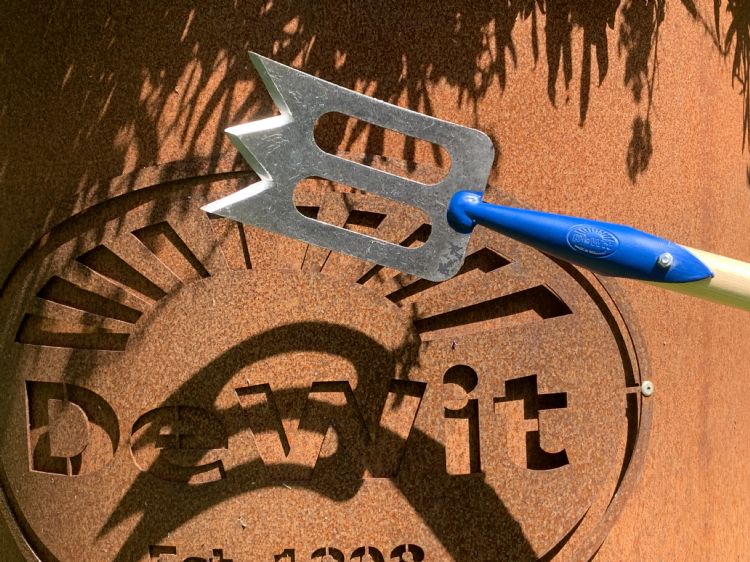 De spork is een kruising tussen een spade en een vork. Een Engelse uitvinding waarbij de klei niet aan je spade kleeft. Bij DeWit hebben ze deze uitvinding omgetoverd tot een schoffelmodel. De sporkschoffel is eigenlijk een kleiner model dan de spork, met drie tanden en zeer licht in de hand liggend. Dat is makkelijk, omdat je direct in de border aangrenzende woekerende graspollen kan wegsteken of omgedraaid los onkruid weer even naar je toe kan harken. Vooral een populair ding op begraafplaatsen, omdat de schoffel ook makkelijk door grind, gravel en schelpen heen gaat. Net zoals bij de echte spork blijft ook klei niet plakken op de sporkschoffel. Derk: 'Echt een prachtding.'