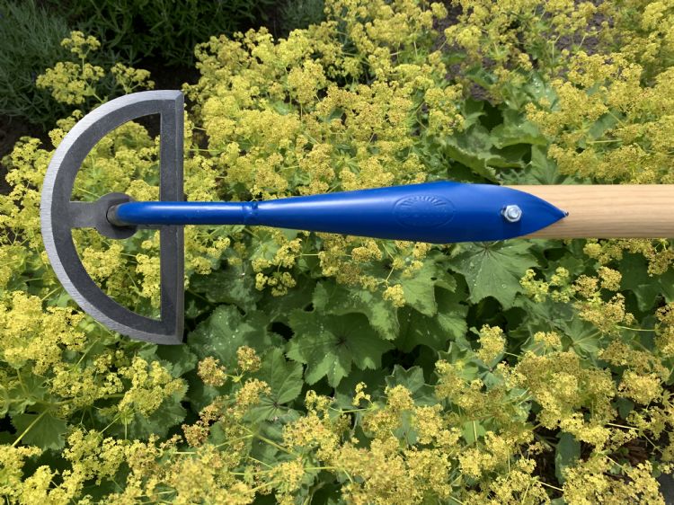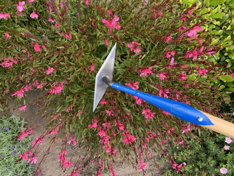 Deze schoffel is rondom scherp, met een egaliserende werking door de gaten en het kruis. Deze schoffel is zo'n vier à vijf jaar geleden gelanceerd bij DeWit en vooral de Fransen hebben hem massaal omarmd. De schoffel ligt lekker licht in de hand, ook door de gaten.