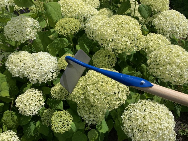 We starten met een bijzondere, de Dutch hoe. Ondanks de naam de minst Hollandse schoffel. In het buitenland veelvuldig verkocht aan tuinliefhebbers onder de naam Dutch hoe: Nederlandse hak. Volgens de mannen van DeWit heeft deze schoffel geen Nederlandse geschiedenis. Waarom deze schoffel in het buitenland dan massaal bekend staat als dé Nederlandse? Sietse: 'De term Dutch Hoe staat voor de manier van gebruik. Nederlanders duwen schoffels, terwijl men in het buitenland gewend is aan de hakkende beweging.' DeWit produceert deze schoffel pas sinds 15 jaar, omdat de vraag vanuit het buitenland kwam. De ergonomische schoffelhilt ontbreekt ook bij deze schoffel.