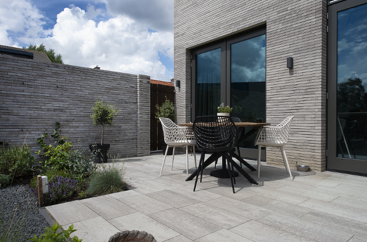 | Een duidelijke handtekening van de architect, met het ton sur ton kleurenpalet uit de collectie GeoSteen voor gevel en terras |