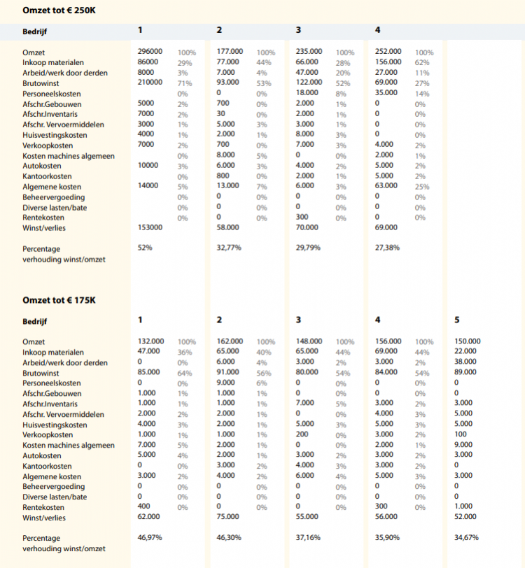 'De cijfers zijn onderling vergelijkbaar doordat we alles hebben teruggerekend naar de eenmanszaak. Op wat details na heb je zo de grote lijn te pakken.'