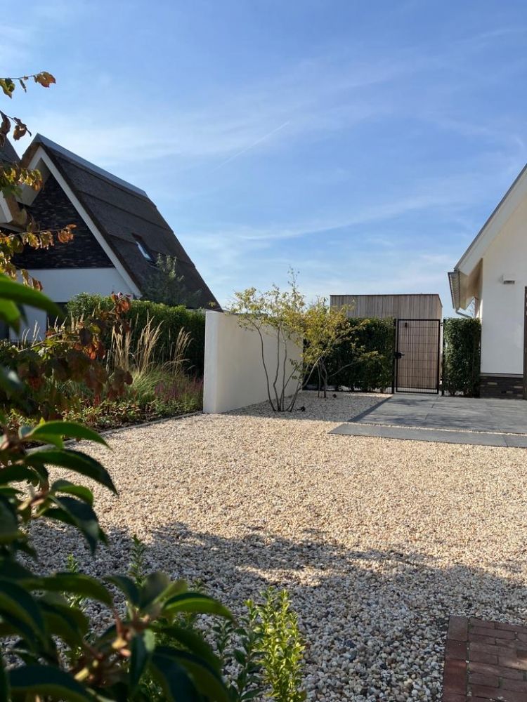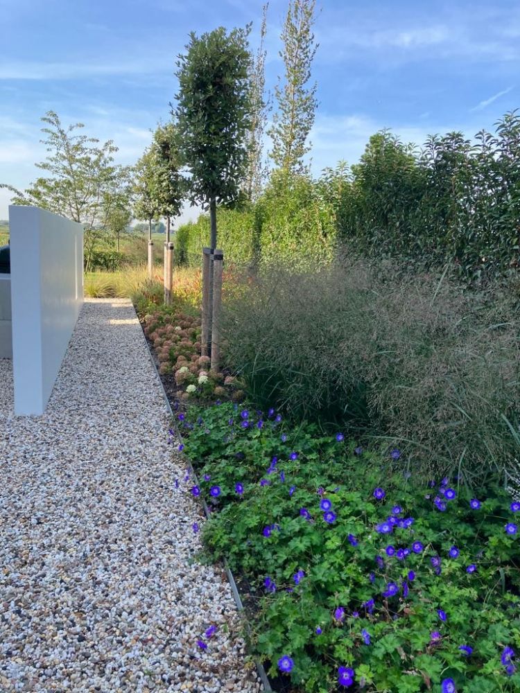 Een tuin ontworpen en aangelegd door ROALD Tuindesign. Deze moderne tuin in een groen landschap is een fijne plek geworden waar de bewoners genieten van het buitenleven.