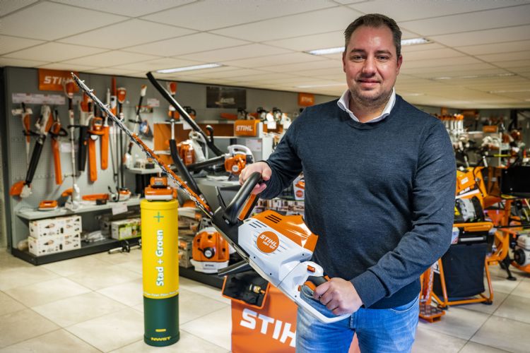 Nagtegaal (STIHL): 'We nemen onze klant mee in het proces van overschakelen op accu. Dat betekent dat je moet leren energiezuinig te werken. Wij geven een cursus over het dagelijks onderhoud van de machines; daar hebben we servicekits voor. Ook geven we advies over het laden van de accu's, zowel in de auto als op de vestiging, met een kluis. Hiervoor werken we met goed gescreende partners.'