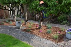 Hi Tinka, de grondplaat plaats je een 2 tot 4 centimeter onder de wortelkluit. Ze zijn zeer makkelijk te breken of te versnijden naar het gewenste formaat. Besproei ze met voldoende water voordat je de aarde en beplanting erop plaatst. Uiteindelijk kan je de bodem mooi afdekken met perzikstenen om uitdroging aan de bovenlaag tegen te gaan. |