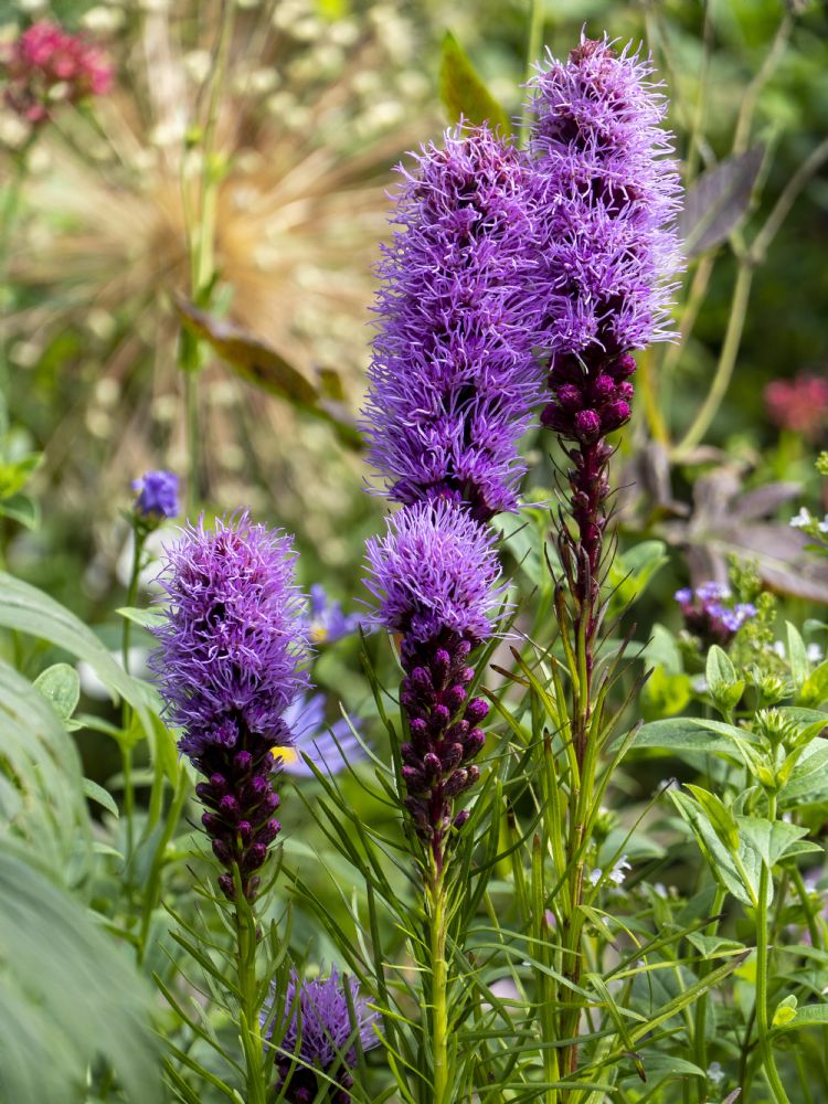 Liatris spicata is een mooie borderplant, die in de zomer aarvormige bloemen geeft. Van oorsprong is het een prairieplant. Het is dan ook een sterke, winterharde tuinplant, die wel zijn blad verliest. Als alle knoppen aan de aren verschenen zijn, begint de bloei met paars-lila bloemetjes boven aan de aar. De bladeren zijn langwerpig en lijken wel wat op gras. De bloemen van Liatris spicata kunnen als snijbloem gebruikt worden en zijn lang houdbaar. Het is een tuinplant die door zijn rechte verticale vorm mooi combineert met andere bloeiende vaste planten en diverse siergrassen in een prairietuin. Liatris is erg in trek bij vlinders, hommels en bijen. Hij staat het liefst op een warme plaats in de zon, in een voedselrijke, vochtige, waterdoorlatende bodem en stelt verder weinig eisen aan de grondsoort. Liatris kan na de bloei worden teruggeknipt, maar de aren hebben nog lang een decoratieve uitstraling. De overblijvende wortels mogen in de winter niet te nat staan; ze kunnen dan gaan rotten. In het voorjaar kunnen de planten worden gescheurd en opnieuw worden uitgeplant.