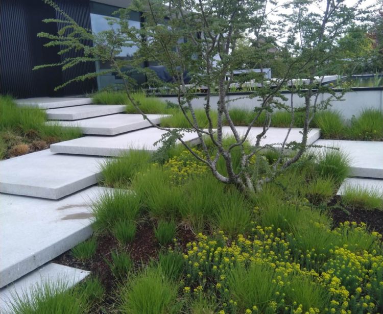 Ebema heeft zich de afgelopen jaren gespecialiseerd in waterregulatie. Met de productlijn Eco Solutions richt de fabrikant zich specifiek op het waterproof maken van de buitenruimte, waarbij esthetiek en functionaliteit hand in hand gaan. De traditionele grasbetontegel richt zich meestal op een industriële omgeving. Ebema_Stone&Style is zich gaan specialiseren in de esthetische oplossingen van de grasbetontegel voor de particuliere tuinen. De Eco Solutions stellen hoveniers in staat de perfecte symbiose te creëren tussen gebruiksgemak, esthetiek en duurzaamheid. De ontwerpers van Ebema houden contact met partijen die gespecialiseerd zijn in de opbouw van de fundering en het samenstellen van grasmengsels die het best resistent zijn tegen klimaatveranderingen. Een interessante innovatie op dit gebied is de integratie van microklaver in het grasmengsel. In België wordt sinds 2013 geëxperimenteerd met klaver in de grasbetontegel en we verwachten dat deze trend in 2023 ook Nederland zal bereiken.