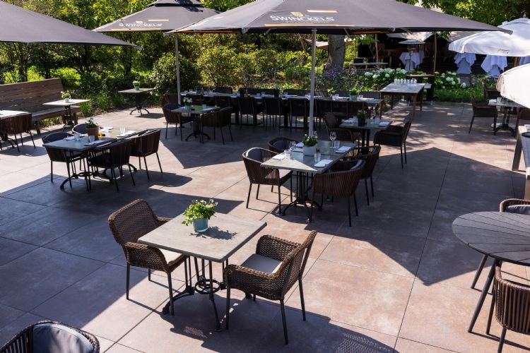 Het vernieuwde terras van restaurant 'De Luytervelde' in Eindhoven is uitgevoerd met de GeoProArte-tegels van MBI De Steenmeesters. Vanwege de omvang van het terras is gekozen voor het extra grote formaat van 100x100cm. Dit zorgt volgens de leverancier voor een rustige en tegelijkertijd luxe uitstraling.