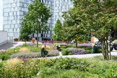 Waardoor komt het volgens Koen Hermans dat GreentoColour onderhoudsarm is? 'De juiste bodemverbetering en gebruik van het juiste substraat zorgen voor een optimale en onkruidvrije start', legt hij uit. Maatwerk bij het ontwerp draagt hier ook aan bij, aldus Hermans. 'De borders groeien snel dicht door het maatwerk, maar ook dankzij het specifieke sortiment en doordat GreentoColour maar liefst acht planten van potgrootte P11 per vierkante meter gebruikt. Hierdoor maakt onkruid minder kans. We gaan nog steeds frequent naar de borders voor onderhoud, maar de hoeveelheid onkruid en de werkzaamheden zijn minimaal. Door het mulchen en bemesten blijven de borders vitaal.' Geldt dat voor alle seizoenen, of zijn de borders in een droge zomer toch minder onderhoudsarm en moet er veel water worden gegeven? 'Door de uitgebreide bodemverbetering, de organische bemesting en het mulchen en omdat de borders goed dichtgroeien, hoeven we niet vaak water te geven. In extreme zomers zoals de afgelopen jaren is het wel belangrijk om extra water te geven.'