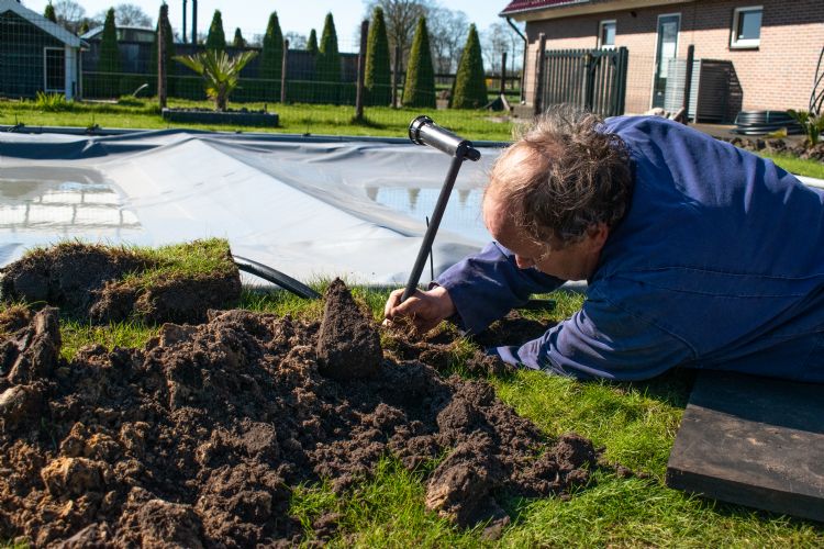 'Het project heeft vertraging opgelopen vanwege de hevige neerslag in maart. Het werd hier een zwembad, waardoor het aanleggen van de leidingen spaak liep. Halverwege april we klaar', vertelt installateur en specialist in watertechniek Michel Westenberg. Uiteindelijk worden er in deze tuin zo'n vijfendertig sproeiers geïnstalleerd, verdeeld over zes zones. Er wordt gebruikgemaakt van een waterbron die zich op een diepte van twaalf meter bevindt.
