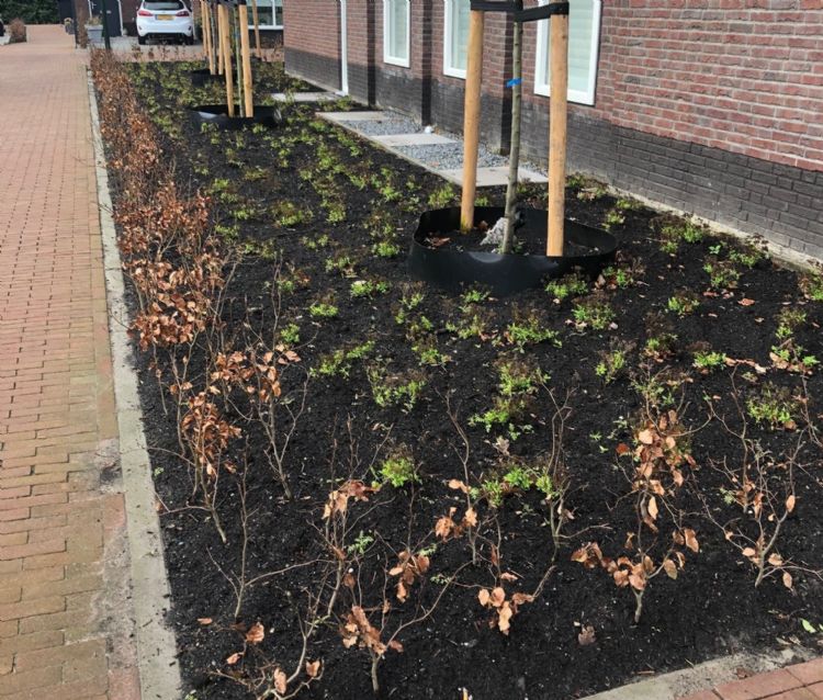 In een bestaand plantvak of plantgat wordt het mest-compostmengsel Substrado Actisoil verwerkt. Kuppens: 'Substrado Actisoil jaagt het bodemleven aan en verbetert de wortelomgeving. Het bevat voldoende organische stoffen, die door het bodemleven worden omgezet in humus. Dit zorgt voor een porierijke bodem met veel waterbufferend vermogen, die daardoor minder snel uitdroogt. Substrado Actisoil bevat ook bodembiologie en rhizobiologie bestaande uit schimmels, bacteriën en streptomyceten. Deze zorgen ervoor dat voedingsstoffen en water beter beschikbaar komen in de wortelzone. Bovendien vormen mycorrhiza's een beschermend microlaagje rond de wortels, dat ze beschermt tegen pathogenen.' Ook wordt hierbij Root Start in het plantvak of plantgat aangebracht.