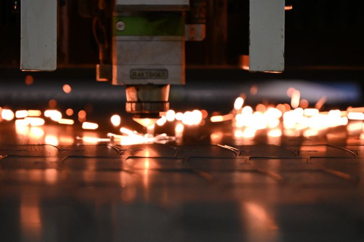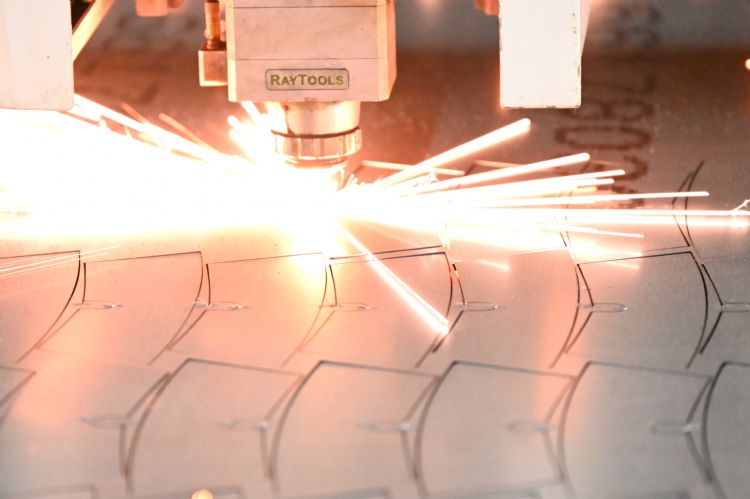Hier worden de schoffelbladen uit het gewalste staal gesneden met een fiberlasersnijmachine. Door dit te automatiseren, zorg je voor zo min mogelijk restafval in het productieproces.