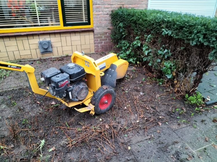Ivo Gruteke heeft geen medewerkers op de loonlijst. In het winterseizoen werkt hij zoveel mogelijk samen met een vaste boomklimmer voor het onderhoud aan bomen; in de andere jaargetijden huurt hij zzp'ers in om hem bij onderhouds-, snoei en rooiwerkzaamheden te ondersteunen. 'We voeren vooral tuinonderhoud uit, maar hebben ook regelmatig met de aanleg van tuinen te maken, hoewel ik me daar niet actief op richt', vertelt Gruteke. 'In de loop der jaren heb ik me ook regelmatig met stobbenfrezen beziggehouden. Daarvoor huurde mijn werkgever of ik dan een zwaardere stobbenfrees van het merk Jo Beau in. Ook voor het versnipperen van hout had ik een gehuurde Jo Beau-machine tot mijn beschikking, een JB M400 van de voorgaande generatie. Voor mijn bedrijf is die machine echter te groot.'
