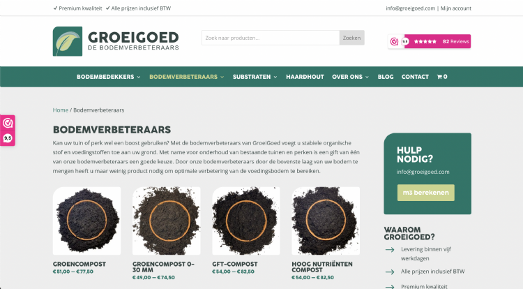 Hardeman vervolgt: 'Wij, als Hardeman, hadden geen webshop en dat zochten we ook niet: een webshop met zand en grind. Daar zijn er al zoveel van. In deze tuinaardesector, die zich richt op bodemverbeteraars en bodembedekkers, is het aantal aanbieders nog niet zo groot. In gesprek met Hooijer Renkum is deze webshop GroeiGoed ontstaan. Wij werken al jaren met hun groencompost; we weten wat we verkopen. Inmiddels hebben we 78 reviews met gemiddeld een beoordelingscijfer van 9,5.'