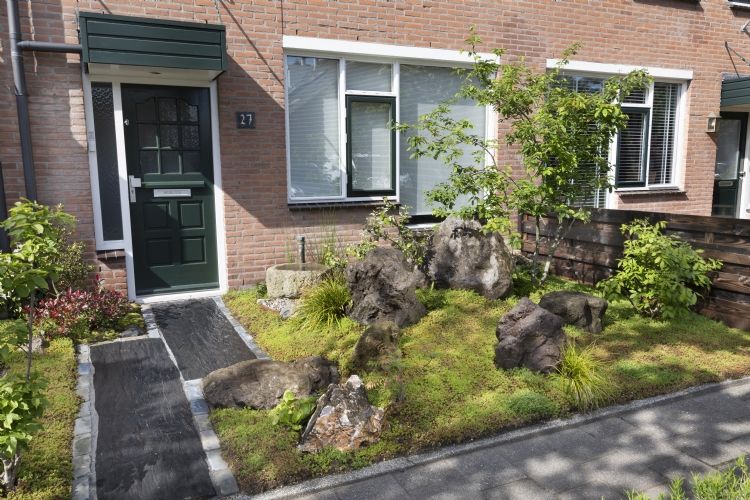 Deze Nederlandse voortuin is ontwikkeld vanuit Japanse tuin principes waarbij de natuur als inspiratie dient. Door gebruik te maken van lokale producten met karakter ontstaat een tuin die er niet uit ziet als een standaard Japanse tuin, maar een tuin met een natuurlijke uitstraling.