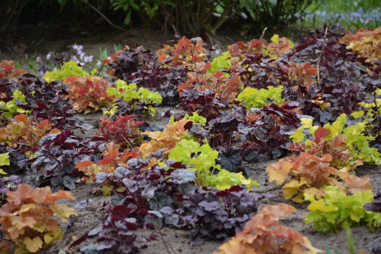 Wil je kleur in de (winter)tuin, maar meer rust dan bloemen vaak uitstralen, dan kun je niet om Heuchera heen. De bossige vaste plant maakt door zijn loof een bodembedekkende indruk, terwijl het op zichzelf staande planten zijn. Hij blijft dus zonder ingrijpen keurig op zijn plaats.