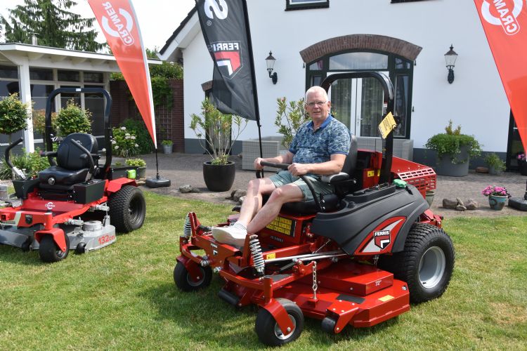 De Ferris-machine waar we hier bij staan, herinnert mij eraan dat mijn bijzondere levenswerk nog niet af is. Meningsverschillen resulteerden erin dat ik geen klant meer ben bij Van Der Haeghe, de importeur. Ik had echter inmiddels naam gemaakt als promotor en productdeskundige op het gebied van deze bijzondere maaiers. Op basis van mijn pionierservaring, opgedaan in Nederland, vroeg dezelfde Driessen namens de Briggs & Stratton-fabrikant in Roermond me om in Duitsland aan de slag te gaan. Daar hadden ze namelijk nog nooit van zero-turns gehoord. Briggs & Stratton is namelijk ook de fabrikant van onder meer Ferris. Inmiddels noemen ze me zelf in Neurenberg "mister Zero Turn". Ik schat dat ik in ons land inmiddels circa honderd professionele Ferris-ZT's heb afgezet. Ook dat doe ik nog steeds. Deze machines, waar nog steeds mijn liefde zit, betrek ik niet van de Nederlandse importeur, maar ik vind ze in heel Europa, door zoeken en informeren.'